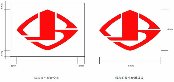 為了保證標志在任何場合、環(huán)境中使用的舒適性,規(guī)范性和方便性,標志的最小使用范圍為6×4cm,在使用中不得小于此最小范圍。