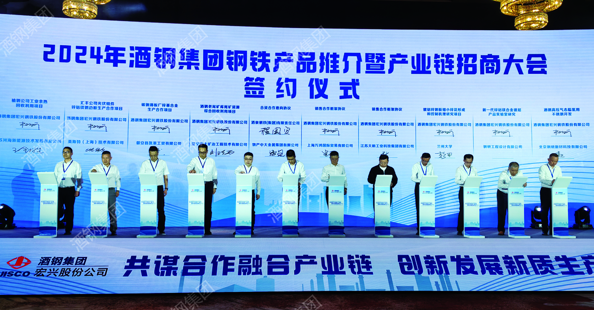 本報訊(記者 楊昊龍)4月28日上午,酒鋼集團鋼鐵產(chǎn)品推介暨產(chǎn)業(yè)鏈招商大會在成都召開,大會主題為“共謀合作融合產(chǎn)業(yè)鏈 創(chuàng)新發(fā)展新質(zhì)生產(chǎn)力”。來自政府部門、鋼鐵行業(yè)咨詢及服務(wù)機構(gòu)、酒鋼產(chǎn)業(yè)鏈合作方等行業(yè)領(lǐng)域的260余人參加會議,圍繞推進新型工業(yè)化、打造新質(zhì)生產(chǎn)力等一系列戰(zhàn)略部署,共話合作、共尋商機。